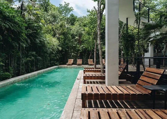 Die 4-Zimmer- Luxury Villa, Beach Club - Jungle View - Sahara Jade Tulum liegt ungefähr 25 Fußminuten von der Playa Tulum entfernt und verfügt über einen privaten Swimmingpool zur Entspannung der Gäste. Die Villa befindet sich 3 km von der Großen Cenote und verfügt über eine Terrasse.